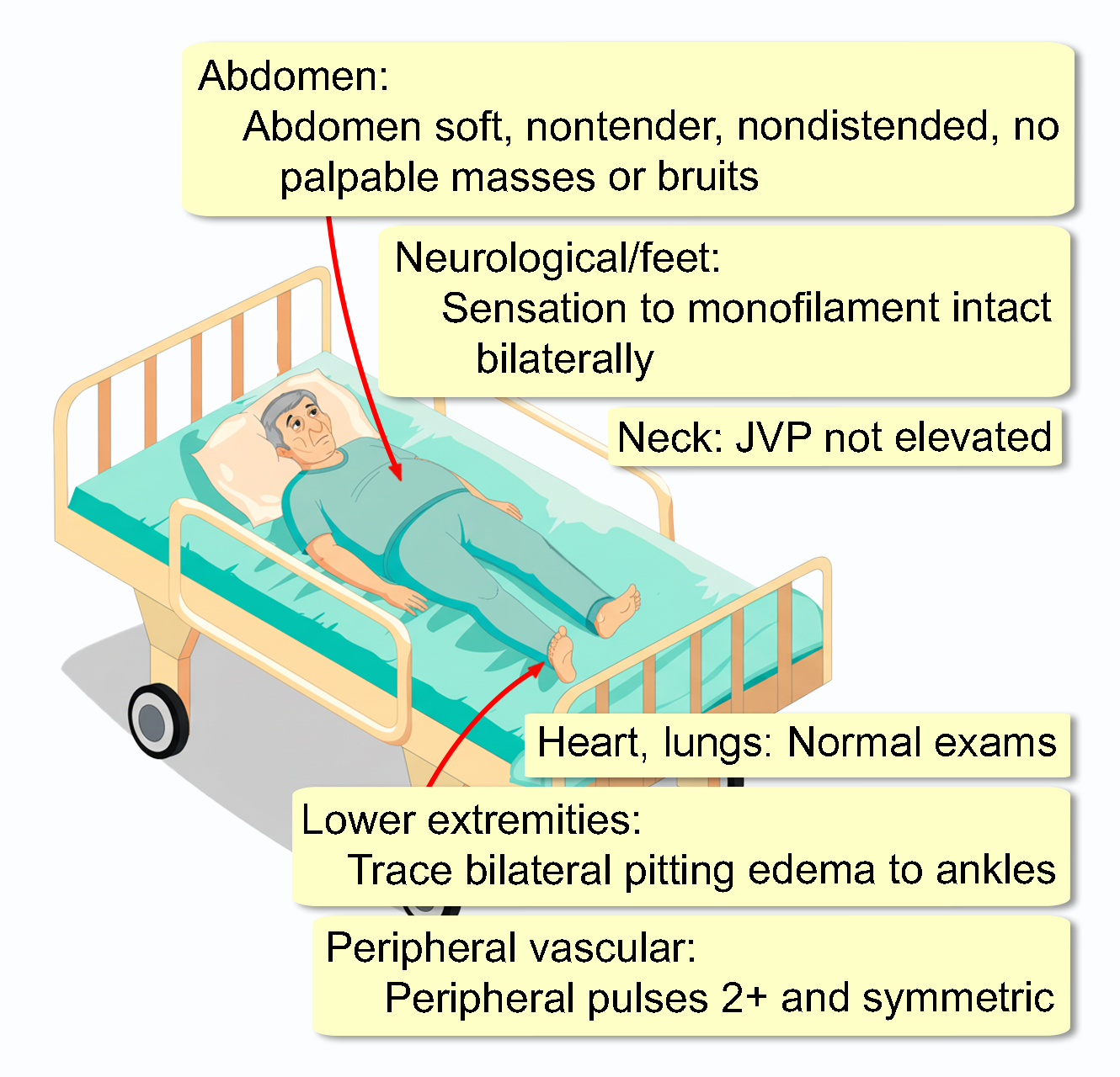 He appears comfortable and well-nourished. He is obese. His blood pressure is 142/86 mmHg with a heart rate of 76 bpm. He is afebrile with a respiratory rate of 14/min and an oxygen saturation of 98% on room air. His mucous membranes are moist.