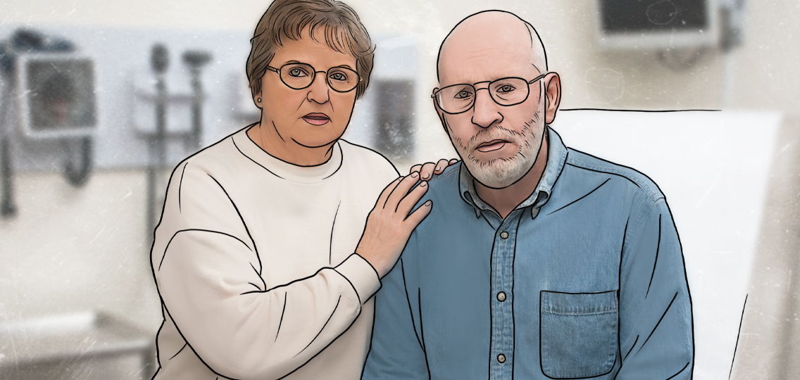 You are assessing Aaron, a 67-year-old male referred to your neurology clinic by his ophthalmologist. His wife, who accompanies him, appears visibly distressed.